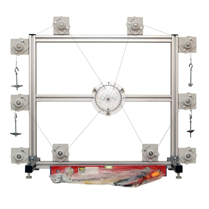 Учебно-лабораторный стенд «Изучение системы плоско расположенных сил», модель предназначен для проведения лабораторных работ при изучении раздела “Теоретическая механика” курса “Техническая механика” для специальностей технического профиля, позволяет определять величину и направление момента, уравновешивающего сумму моментов сил, действующих на твердое тело с неподвижной осью вращения, демонстрировать зависимость момента силы относительно оси от ориентации линии действия силы.